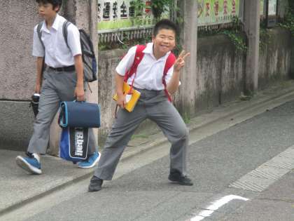 カメラを意識する生徒、そうでない生徒。元気に挨拶する生徒、頭だけ下げる生徒。色々です。その日の気分にもよるのでしょうが、大体はその生徒の個性が表れているようです。それで特に問題はありません。
