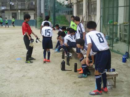 グランドではサッカー部が烏丸中と九条中を迎えて練習試合です。