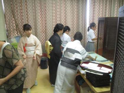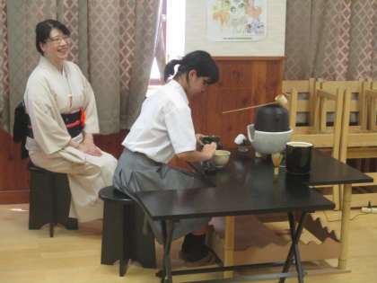 中学生がお手前を披露しますが、学校運営協議会の伝統部会の方々にもお手伝いいただいています。