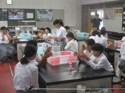 期待を発生させ、その力でポリのコップを飛ばす実験です。とても盛り上がっていました。