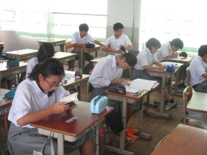 英語の授業では、今日の予定の範囲は終わったのでしょうか、各自が自習していました。もちろん、教科担当の先生はいましたが…。