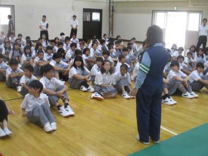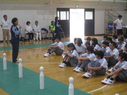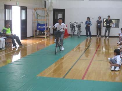 後半は体育館に移って、実際に自転車に乗って学習です。
