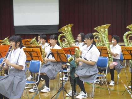 メインは式典の方ですが、多くの方は金管バンドと吹奏楽部の発表を楽しみにいらしています。