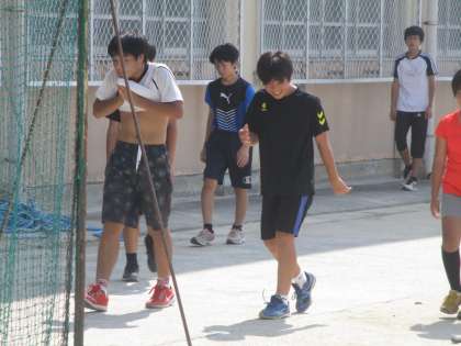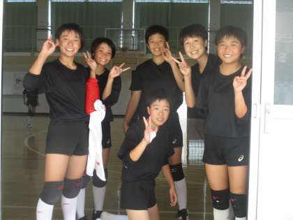 体育館の割り当てはバレー部のようです。大汗をかいて練習しています。