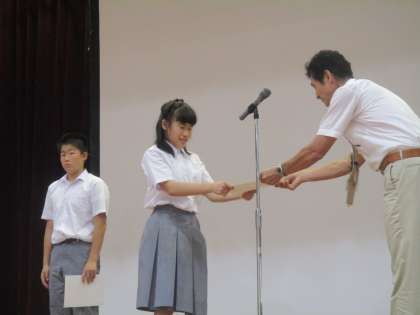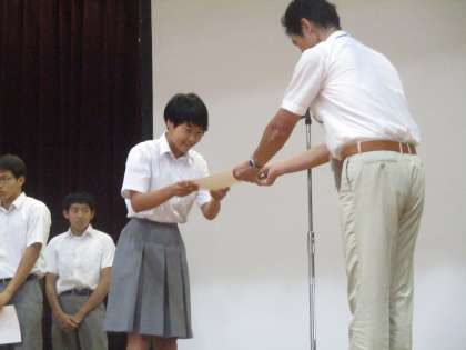 6組の生徒は、こういう場面に出て来てみんなの前で賞状を受け取れるようになりました。素晴らしい成長です。