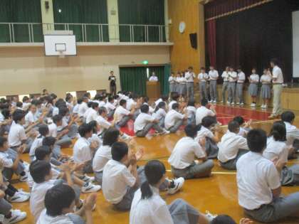 クラブチームで頑張っている人を含めて、選手たちの夏季大会やコンクールでの健闘を祈って全員で拍手をしました。