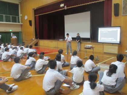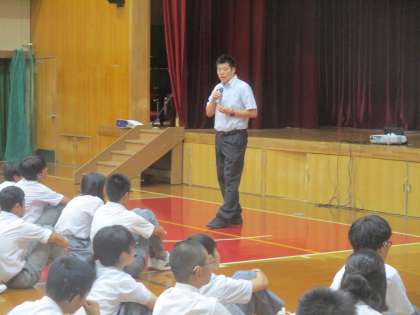 生徒指導部長の話と環境委員長からの連絡で終業式を終えました。