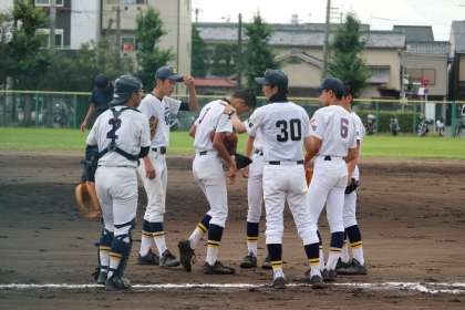 少しでもピンチになれば監督がすぐに選手を集めます。この時は、少しピッチャーが少しコントロールを乱して苦しんでいるのを見た監督が敬遠の支持を出したところです。