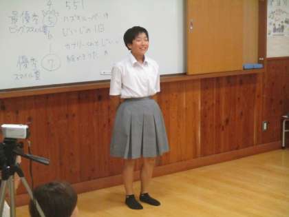 すべてのグループの発表が終わってから、全体を通しての感想を述べられる人を求めたところ、きちんと中学生小学生の代表者が挙手して出てきてくれました。