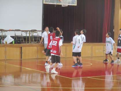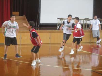 男子バスケットボール部は北野中学校を招いて合同練習と練習試合です。