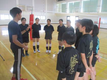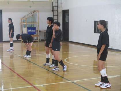 体育館ではバレー部が活動を始めています。