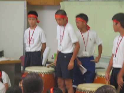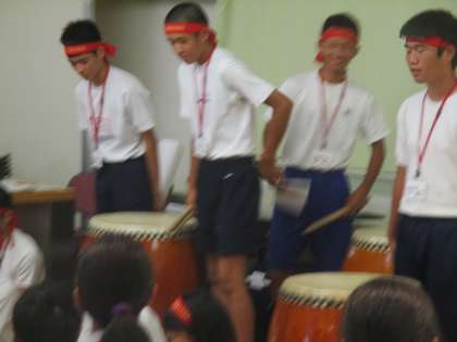 生徒会長は太鼓を演奏するグループで頑張りました。