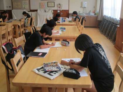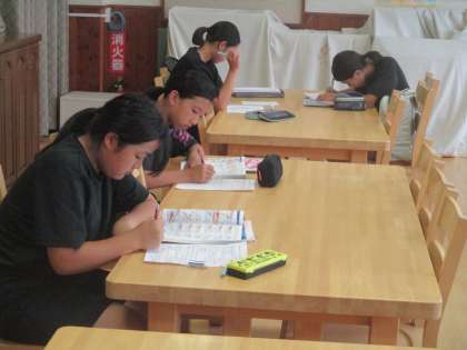 今体育館で活動しているバレー部は、昼前から来てみんなで勉強していました。