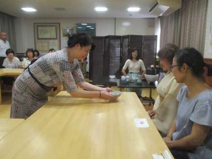 お道具も夏らしいガラスや平茶碗などを使い、真夏の熱い中、しばし涼を感じるお茶会でした。