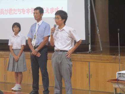 1・2年からも前に出て発表したい人を募ったところ、3年を含めて3人が出てきました。