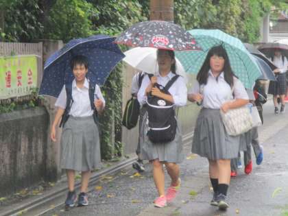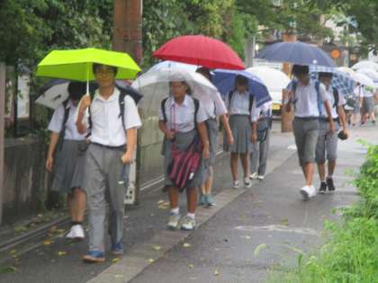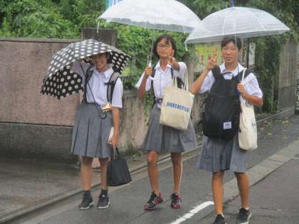 生徒たちが登校する時間帯の終わりの方にはマシになりましたが、多くの男子生徒がズボンの裾をまくり上げて登校してきました。