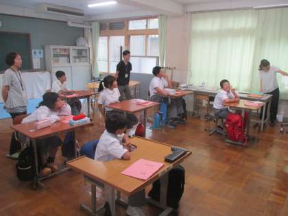 6組では、この夏に担任の先生が訪れたベトナムでの研究の様子を紹介していました。