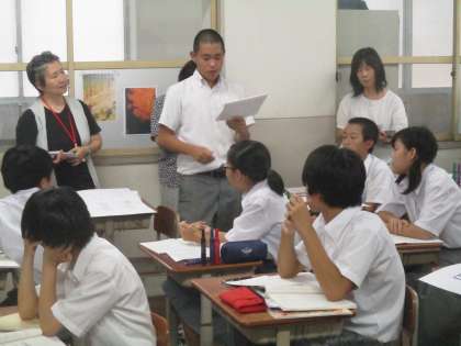 今日学んだことの発表です。これについては、岡田先生が突然指名したものです。こういう場面でも話せるようになりました。