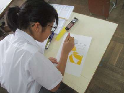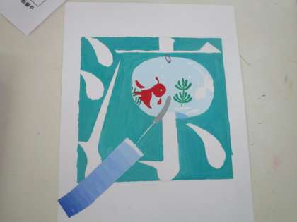 1組は美術です。絵文字が完成してきました。涼しいそうな「涼」、をはじめ、力作がたくさんあります。