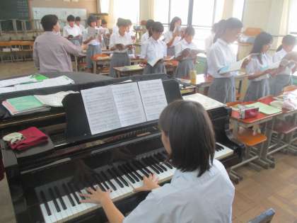 2組は音楽。合唱練習が始まっています。1年生だから、もっともっと大きな声で元気に歌ってほしいものです。
