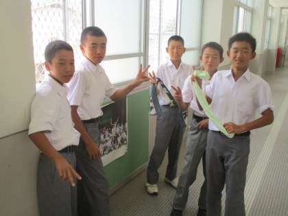 野球部の男子が、廊下で何やら話し込んでいました。早く昼食の用意をしなさい!