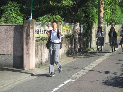 今日も暑い朝になりました。校門に立っているだけで汗ばんできます。そんな中を今日も生たちは元気に登校してきました。