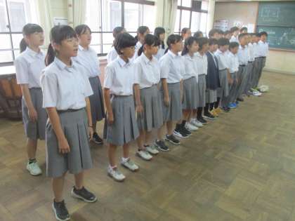 男子が元気が良いので女子は頑張りましょう。綺麗な声で歌えているので頑張ってもっと大きな声を出せたら他クラスを圧倒するような合唱になるかも…。
