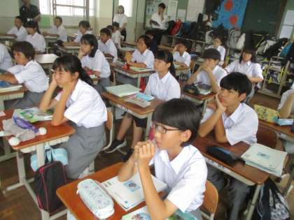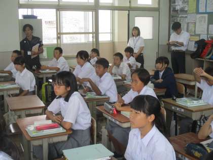 1時間目は教育実習生の研究授業です。1−1で社会科の授業が行われました。