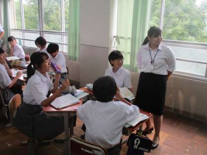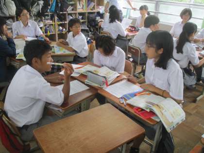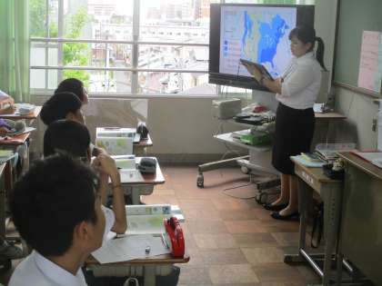 グループ討議は「アメリカの農業の特徴を示すようなキャッチフレーズを創ろう」ということで、今日の授業のまとめのような内容でした。これもよい構成です。