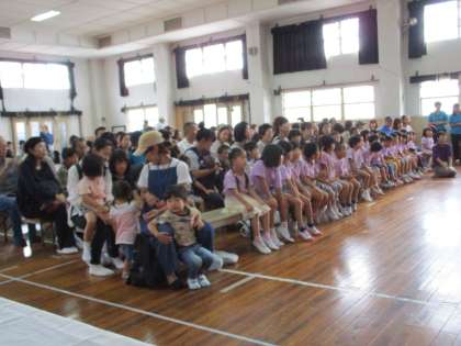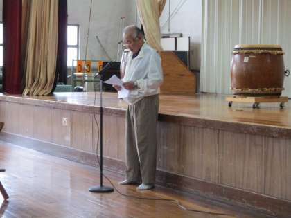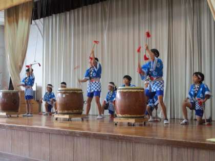 住民福祉連合協議会長の挨拶に続いて二条城北小学校の草の芽学級が和太鼓の演奏を披露しました。