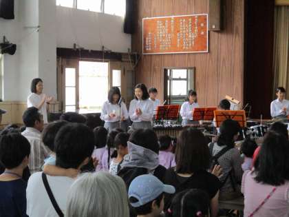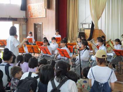 待賢幼稚園の園児の歌とお遊戯に続いて、いよいよ二条中学校吹奏楽部の演奏です。