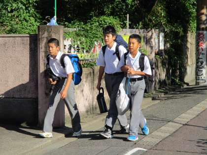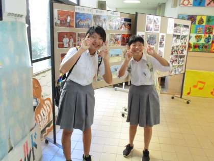 校門から戻ってきたところ、校長室前に張ってある「修学旅行の写真」を懐かしそうに見ている人たちが居ました。もう半年も前のことになっちゃいました。