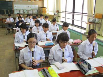 3組の音楽の様子です。今日はアルトリコーダーで喜びの歌の演奏です。
