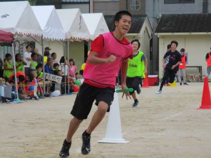地域の運動会に中学生が活躍していました。