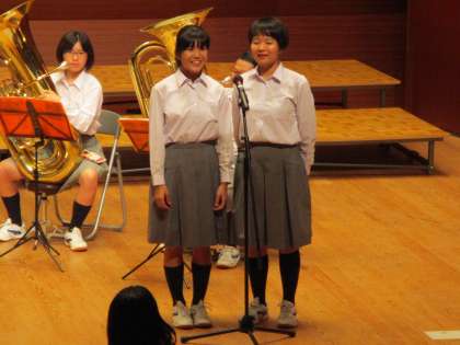 うちの部では、MCの人が「とうとう最後の曲になってしまいました」と言った直後、全員が「えっ、えーっ!?」と言って笑いをとりますが、そんなことをする学校は他になく、温かい笑いをもらいました。