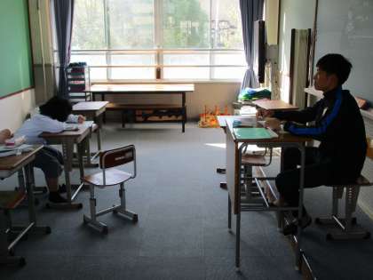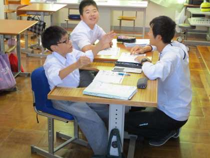 この時間は数学、いつもの通り3つに分かれてやっています。