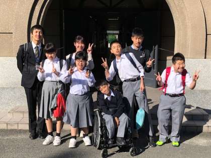 さて、学校へ戻ってくると、6組のみんながファイナンスパークへと出発するところでした。このあと、学習の様子を観に行きますが、先ずは元気に出発する場面を紹介します。