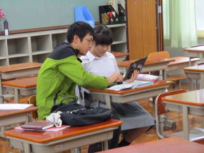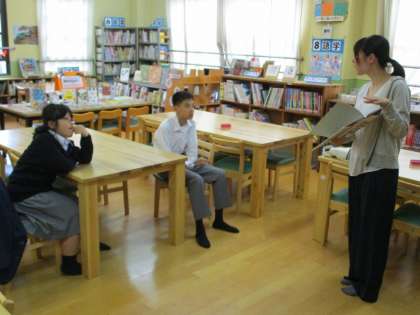 3つのグループに分かれて学習です。1つは図書館での学習です。