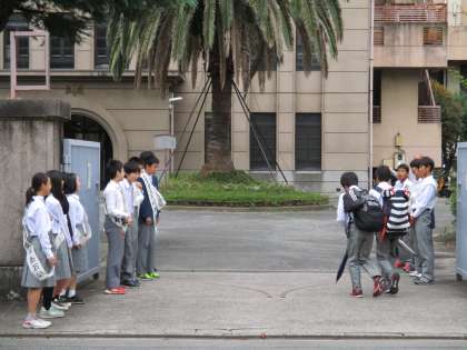 朝の校門がにぎやかでいいです。