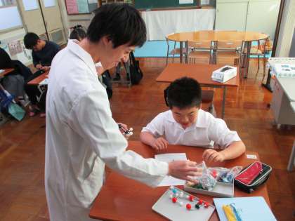 前の時間にもやっていました分子の構造を知る学習です。モデルを使って分子を創ります。