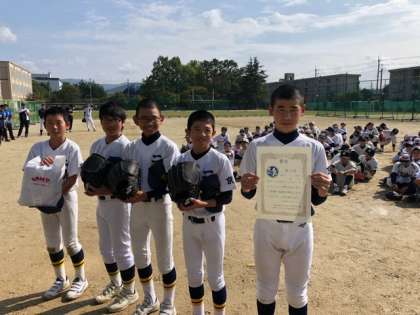藤森中学校で行われたキャッチボールクラシック京都大会2019で3位になりました。副賞として、グローブ3つとタオルを9枚いただいたそうです。