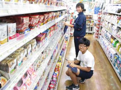 今日は陳列棚の整理です。昨日はペットの世話をさせてもらったようです。
