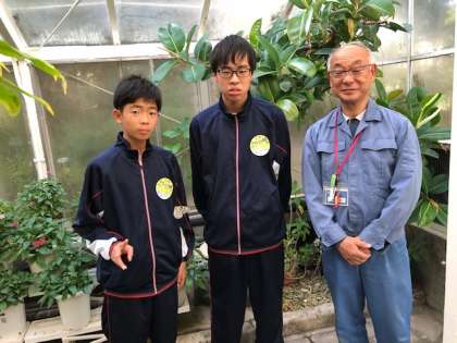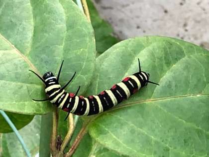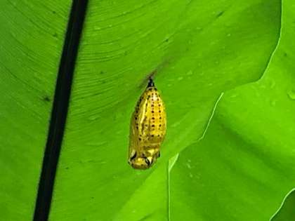チョウの館の中に居ました。2人とも幼虫を触れないと聞いて驚きました。