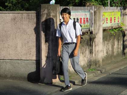1枚目の写真の生徒は1年生の頃からずっと半袖でした。