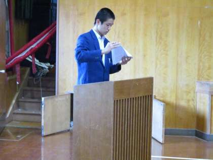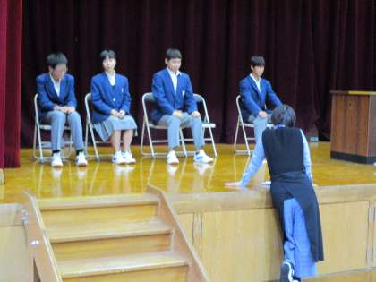 講堂では6時間目の認証式のリハーサルが行われていました。