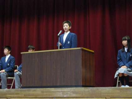 全員の認証がすんでから新生徒会長が決意の言葉を述べました。