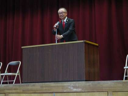 代表生徒への認証が終わった後、学校長から新役員への激励と旧役員への労いの言葉がありました。