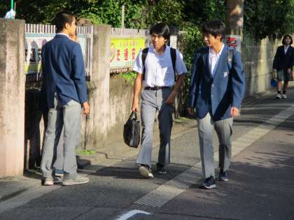 半袖カッターシャツで登校する生徒が日に日に減っていきます。でも、多分この男子生徒は来年の春までこれで通すと思いますが…(笑)…。