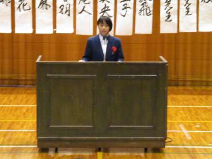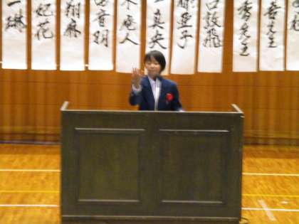 その時の文章をさらに膨らませて本大会に臨みました。演題は「母との約束」。自分の将来の夢について語り、夢と現状の自分とを結びつける中学生らしい弁論です。