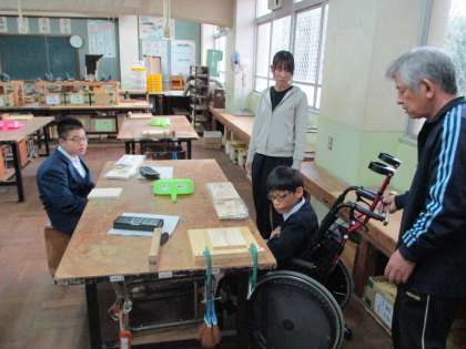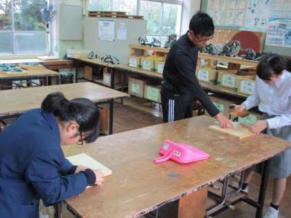 木材加工で本箱を創ります。今日はカンナかけの練習ですが、なかなか難しそうでした。